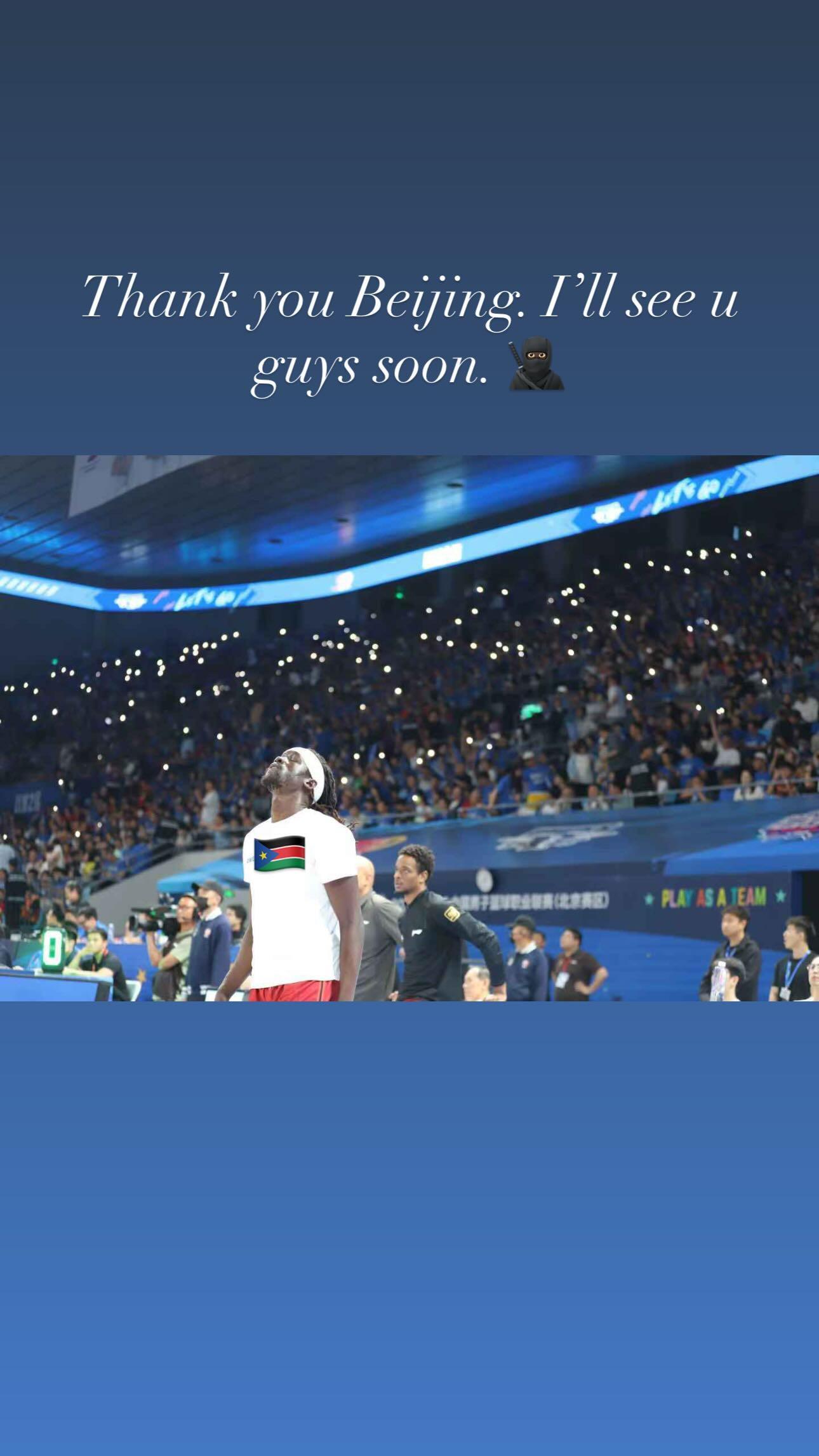 奥莫特更新了一张自己身着北京首钢训练服抬头仰望的图片,配文:谢谢你,北京,我和你们很快就会再见面的。