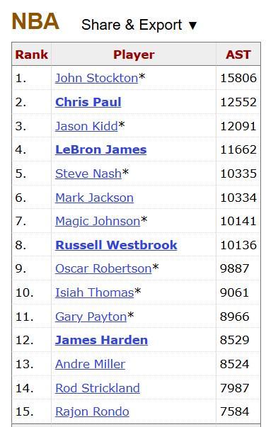 目前詹姆斯以42406分高居总得分榜第一,同时以11662次助攻排名总助攻榜第四位,排在他身前的是斯托克顿、保罗和基德。