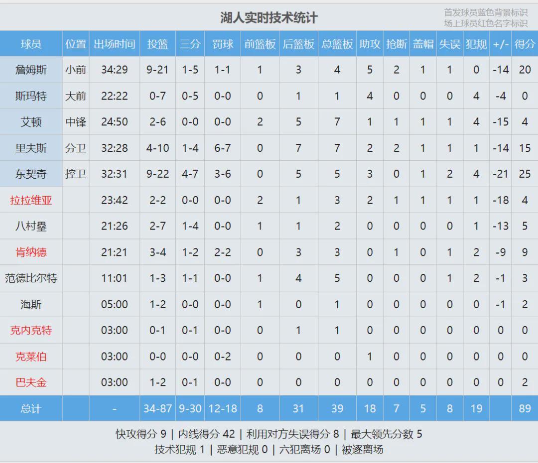 现场观战的湖人名宿詹姆斯-沃西赛后评论:“你们没有表现出对湖人球衣的尊重!当你意识到自己即将落败,你就开始抱怨、发牢骚、把目光投向裁判。”湖人跌至西部第六,森林狼躺升第五。最后看看数据: