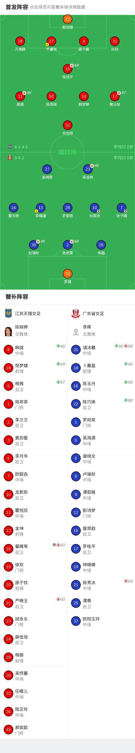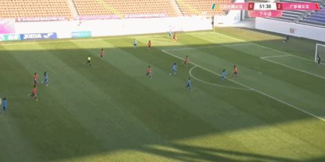 第5分钟,刘宣池开场头球破门,广东女足1-0江苏无锡女足