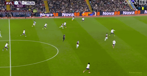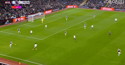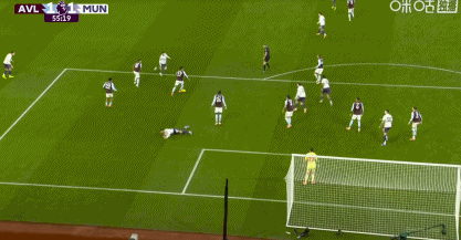 第45分钟,纯个人能力!摩根-罗杰斯内切抽射挂死角,维拉1-0领先曼联!