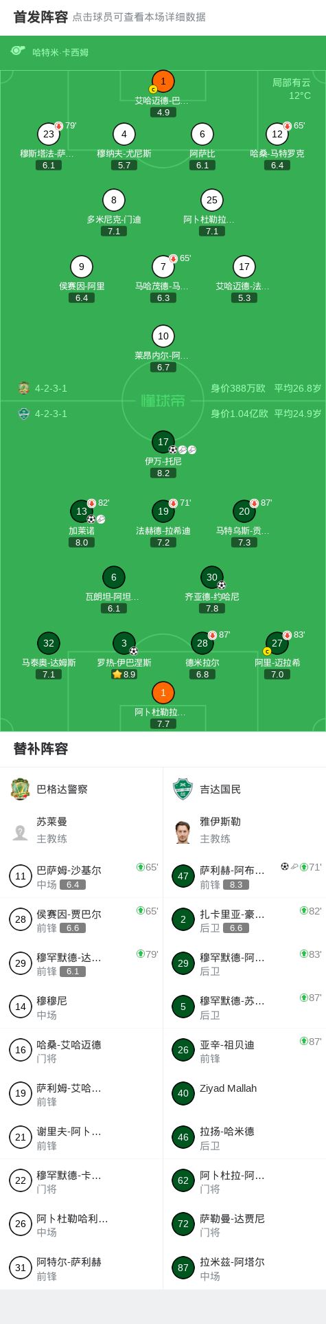 第56分钟,吉达国民球员加莱诺助攻伊万-托尼打入一球。