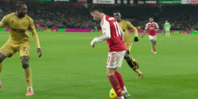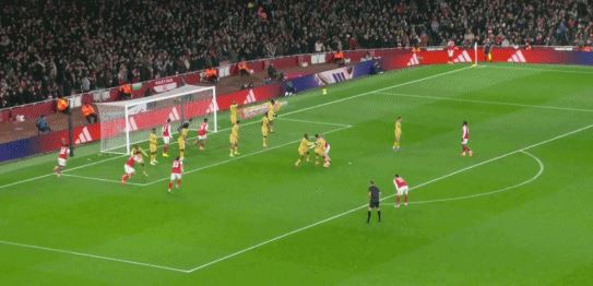 第15分钟,阿森纳角球制造混乱,马丁内利迎球抽射打偏