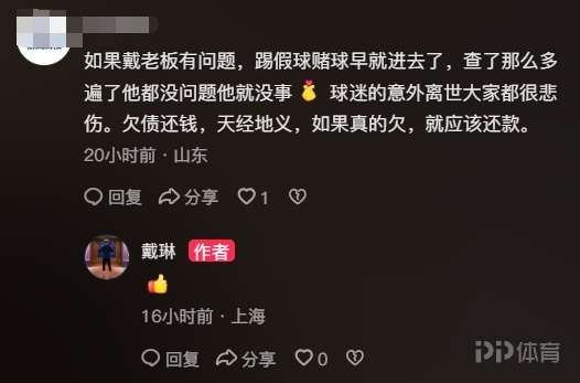 前国脚戴琳近期深陷“拖欠球迷救命钱”风波,社交媒体显示,戴琳昨夜点赞评论了多条支持自己的言论。