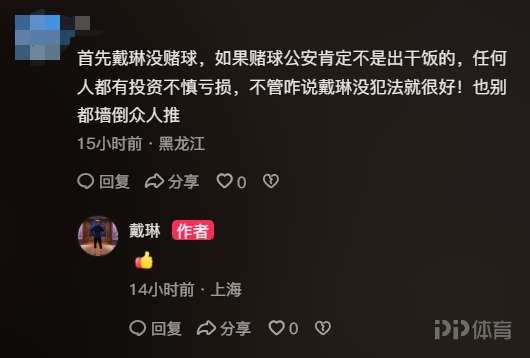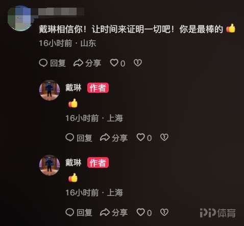 在昨天晚间,戴琳在其社媒评论区点赞了多条评论,内容大致为声援他没有赌球,以及相信、勉励他的话语。