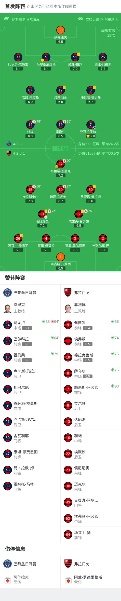 第61分钟,德阿拉斯卡埃塔造点,若日尼奥主罚命中,弗拉门戈1-1巴黎
