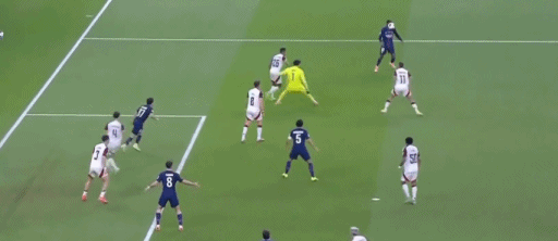 第90+6分钟,登贝莱将球传向门前,马尔基尼奥斯竟上演解围