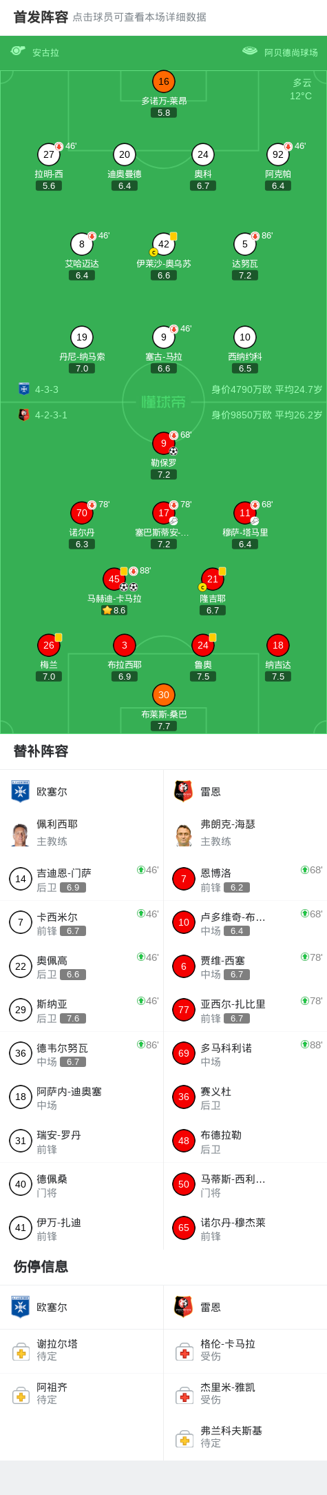 第45分钟,雷恩球员穆萨-塔马里助攻马赫迪-卡马拉打入一球。