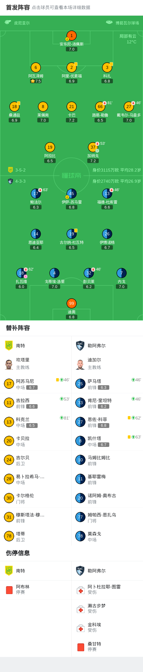 北京时间2月23日法国足球顶级联赛第23轮,南特主场迎战勒阿弗尔。比赛中,勒阿弗尔球员扎瓦维出现失误造成本队失球,随后南特球员加纳戈通过点球扩大比分。最终南特以2-0战胜勒阿弗尔。