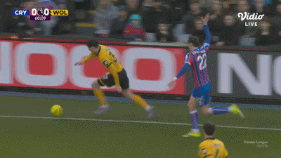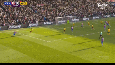 第90分钟,盖桑临近比赛结束破门,水晶宫1-0狼队