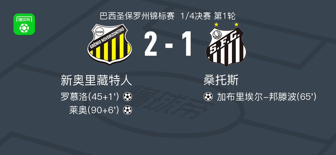 北京时间2月23日巴西圣保罗州锦标赛 1/4决赛 第1轮,新奥里藏特人对阵桑托斯。新奥里藏特人罗慕洛破门,莱奥破门。桑托斯加布里埃尔-邦滕波破门。最终比分新奥里藏特人 2-1 桑托斯。