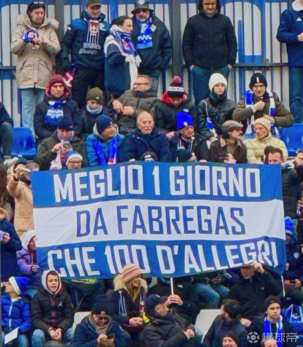这些科莫球迷打出的横幅上写着“当1天的法布雷加斯胜过当100天的阿莱格里”,显然这是对阿莱格里执教的球队倾向于防守的球风的讽刺。