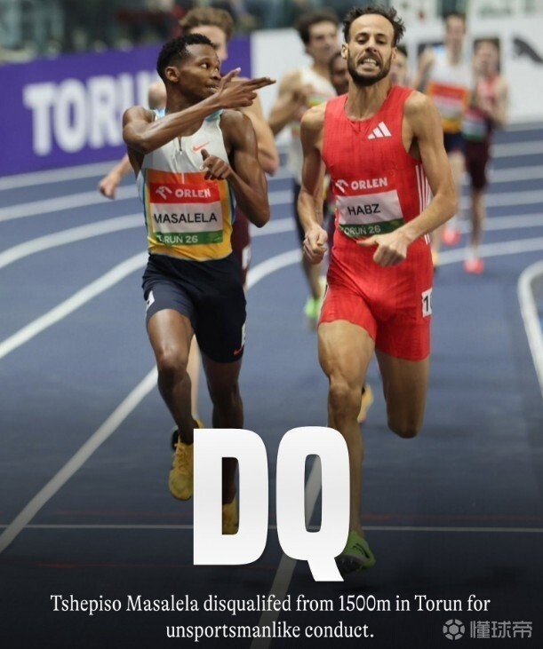 北京时间2月23日,博茨瓦纳中长跑运动员特希皮索-马萨莱拉在波兰举行的一场室内赛中赢得1500米冠军后不久,即被取消资格,原因是他做出了一个具有攻击性的手势。