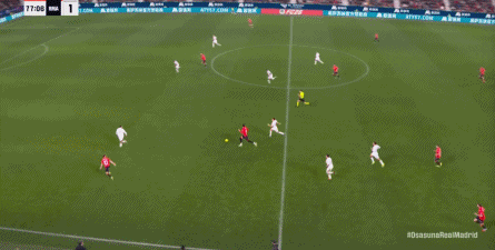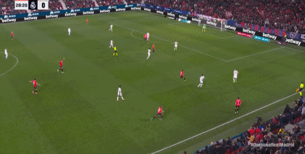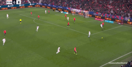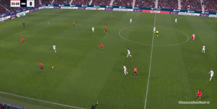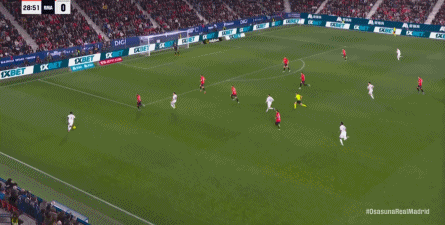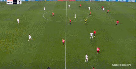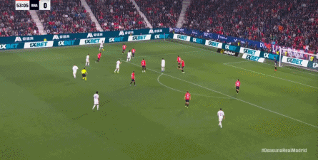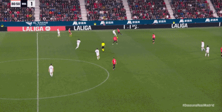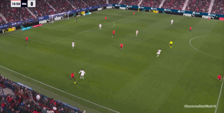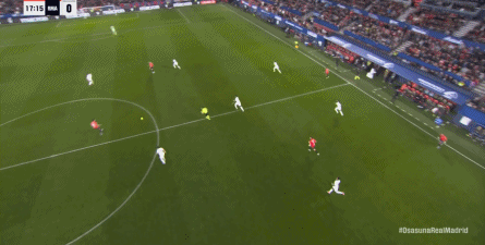 第78分钟,皇马在高位人盯人的时候出现问题,让奥萨苏纳打到了前场,而且再次打出了传中进攻的威胁: