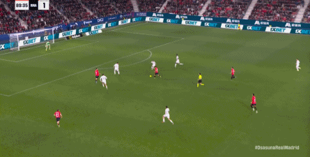 这是足球场上最残酷的现实,于是在第90分钟,奥萨苏纳在中线区域施加压力,让皇马出现了失误: