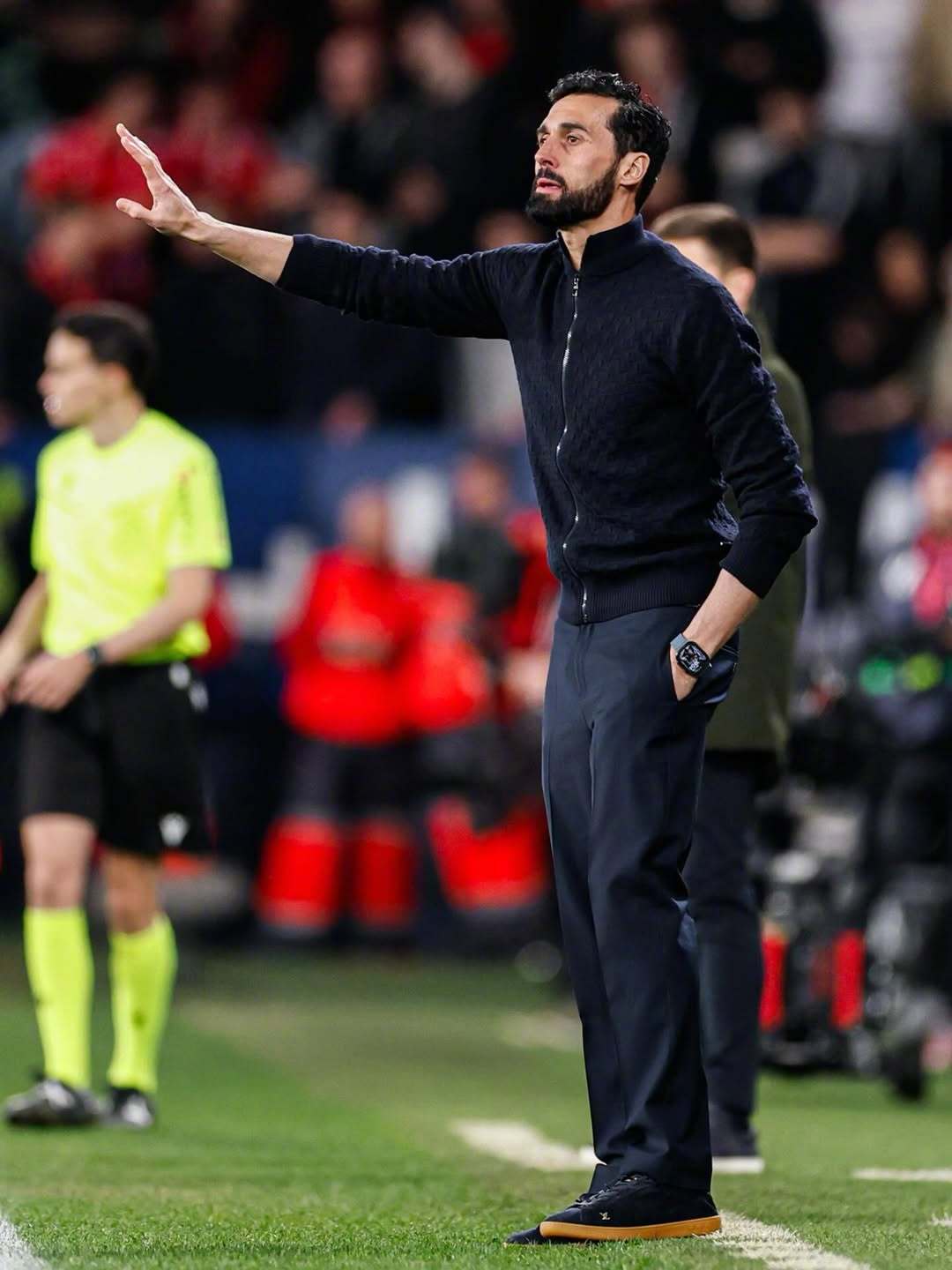 首先在进攻端,维尼修斯从边路启动进攻,起脚质量不佳,直接被奥萨苏纳门将没收,维尼修斯必须要从边路开打,包括姆巴佩带着防守球员到他身边接球的思路,都是皇马的老毛病了,一点都不稀奇: